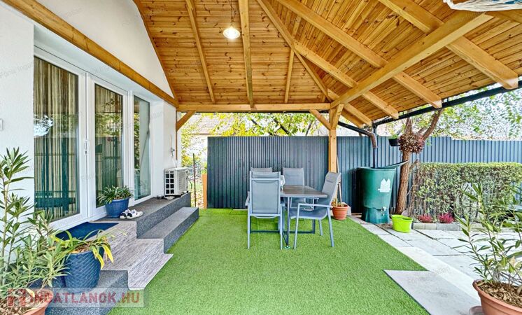 fedett, műfűvel borított terasz 16 m2,