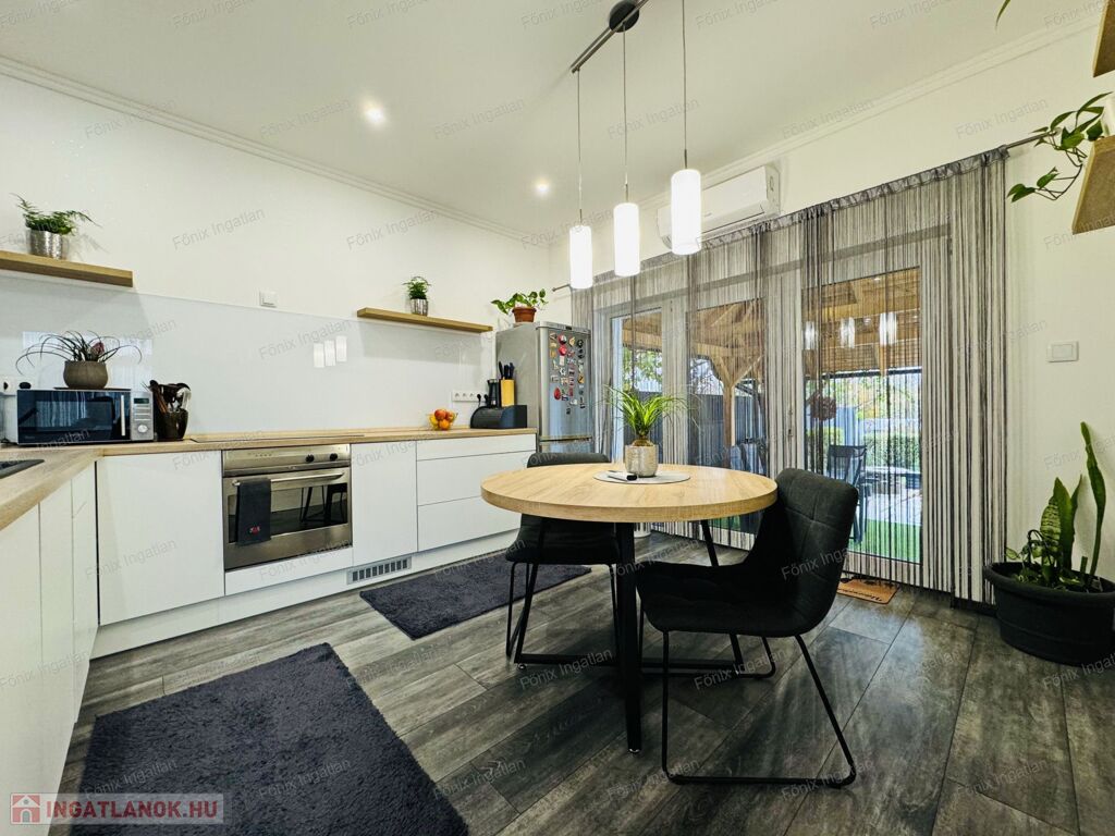 Debrecen, Epreskert, mai ízlés szerint átalakított, felújított ikerház, fedett terasszal, autóbeállási lehetőséggel, tárolóval eladó.