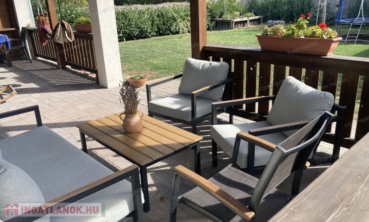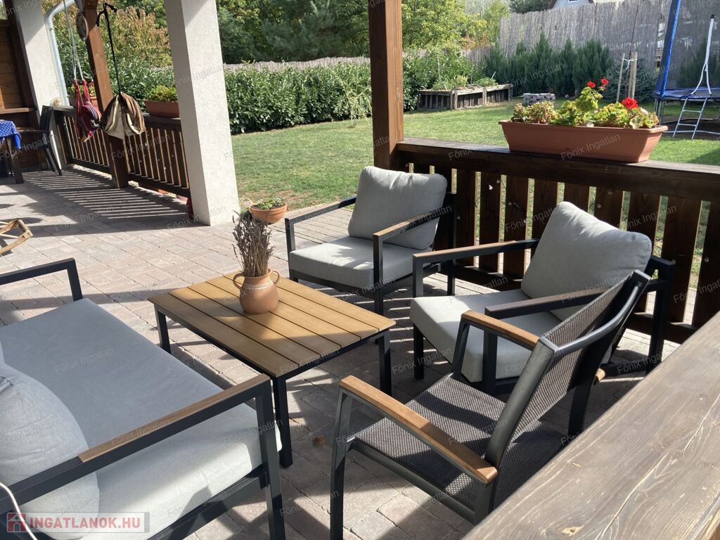 A nappaliból közvetlen kijárat nyílik a fedett teraszra, ahol könnyedén tarthatók családi ebédek, baráti összejövetelek vagy nyári vacsorák.