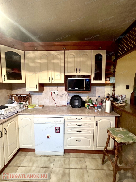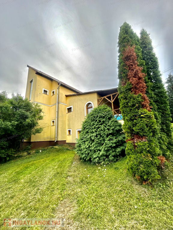 A ház 1991-ben épült, háromszintes, közepes állapotú családi ház. Külső falait 5 cm-es dryvit szigeteléssel látták el, a tető cseréppel fedett. Részben műanyag, részben eredeti fa nyílászárókat találunk az épületen. Az ingatlanhoz tartozik egy különálló garázs és egy felszíni parkoló, mely akár 10 autónak is helyet biztosít. A telek 3877 nm-es, parkosított kerttel és egyedi fa szerkezetű vendégházakkal. Az épület gyorsan birtokba vehető, azonban némi felújítást igényelhet az állaga szerint.