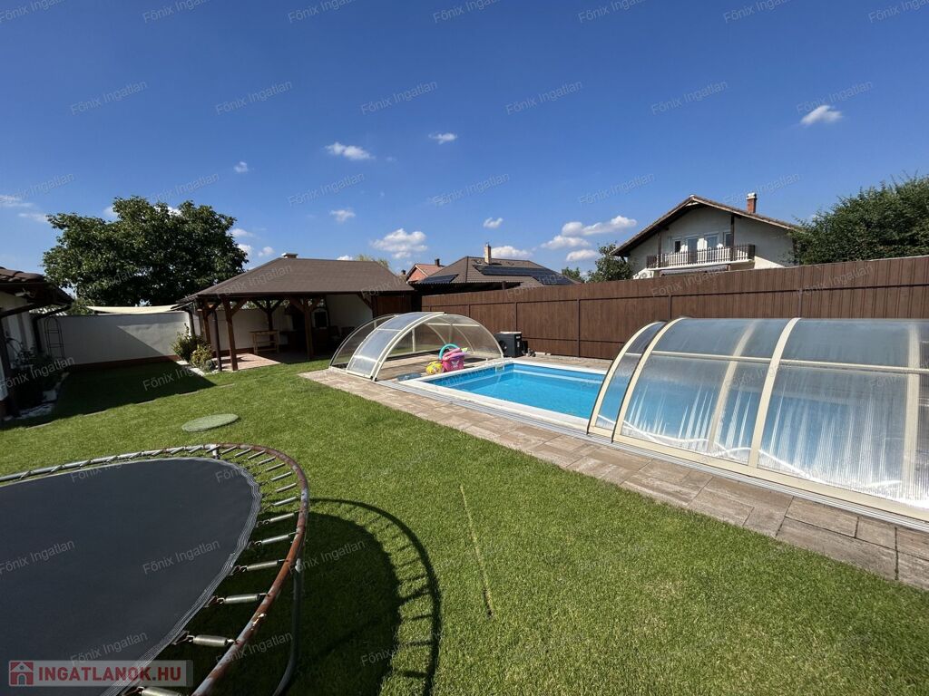 Vácrátóton medencés, felújított családi ház eladó! Vácrátót csendes részén, 750 m²-es telken kínálunk eladásra egy 154 m²-es, teljes körűen felújított és szigetelt, amerikai konyhás-nappalis, 4+1 szobás önálló családi házat, saját fűthető medencével és dupla garázzsal.