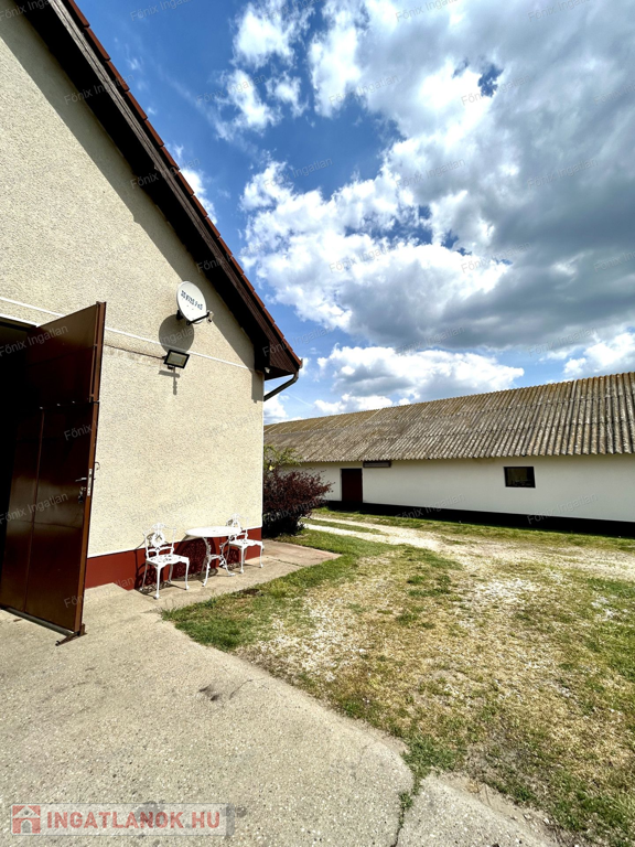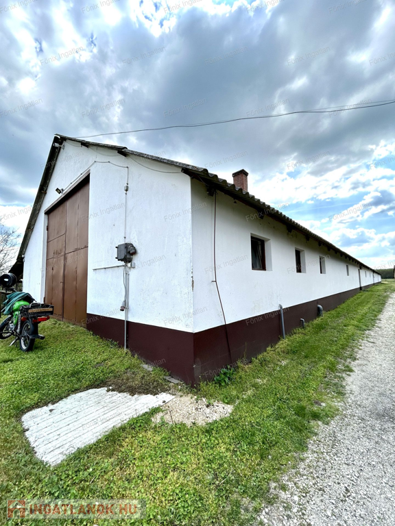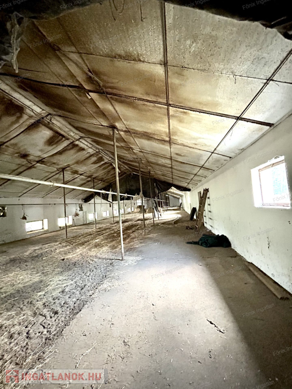egy kb. 800 m²-es, akár álatttartásra vagy TÁROLÁSRA ALKALMAS, FŰTHETŐ, MAGAS belmagasságú, valamint egy kb. 200 m²-es tároló épület, illetve két DUPLA GARÁZS (tégla és lemez kivitelben).
