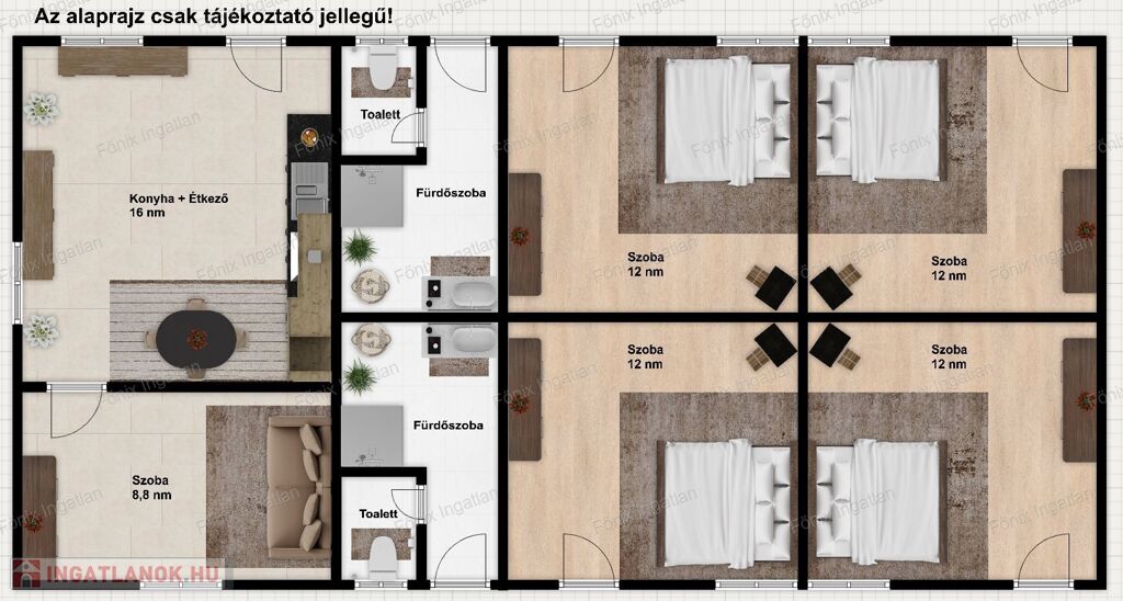 - 4 hálószoba dupla ággyal,